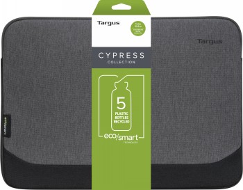 Targus Cypress Sleeve EcoSmart 15.6" -suojatasku on valmistettu kierrätetyistä materiaaleista. Sen valmistamiseen on käytetty viisi kierrätettyä muovipulloa ja kankaan värjäämiseen on käytetty vain luonnonmukaisia väriaineita.