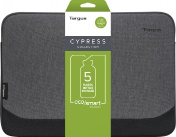 Targus Cypress Sleeve EcoSmart 13-14" -suojatasku on valmistettu kierrätetyistä materiaaleista. Sen valmistamiseen on käytetty kolme kierrätettyä muovipulloa ja kankaan värjäämiseen on käytetty vain luonnonmukaisia väriaineita.