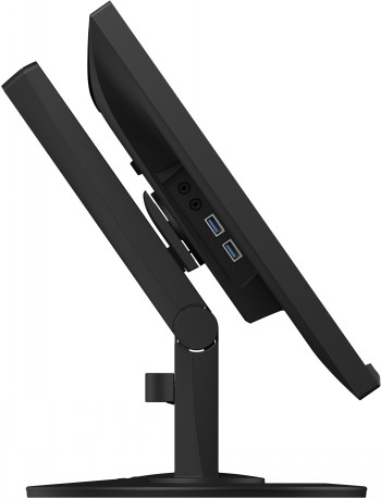 Näyttöä voi myös säätää korkeuden, kallistuksen ja käännön suhteen täydelliseen työskentelyasentoon. Kehyksetön muotoilu tuo modernia ilmettä työympäristöön, ja heijastamaton pinta ehkäisee häikäisyä kirkkaasti valaistuissa tiloissa.