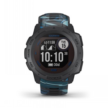 Instinct Solar -kellon avulla harrastat pitempään. Kestävässä GPS-älykellossa on aurinkolataus, joka tarjoaa ennennäkemättömän pitkän akun keston älykello- ja Expedition -tiloissa ulkona liikuttaessa. Sykkeen, stressitason ja unen seuranta sekä Pulse Ox -anturi seuraavat kehon energiankäyttöä ja auttavat ymmärtämään paremmin omaa terveyttä ja hyvinvointia. Rakkaista urheilulajeista saa enemmän irti hyödyntämällä kellon esiladattuja lajiprofiileja, joihin kuuluvat mm. juoksu, pyöräily ja uinti. Älykkäät ilmoitukset kellon näytöllä varmistavat, ettei mitään tärkeää jää huomaamatta. Laite hyödyntää useita satelliittinavigointijärjestelmiä (GPS, GLONASS ja Galileo). Instinct Solar - Surf Edition -mallissa on surffaustoimintoja, mm. vuorovesitiedot ja erityinen surffaustila, jonka avulla jokaisesta aallosta saa parhaat tehot irti. Experience more of life outside with the new Instinct Solar.