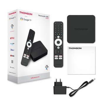 | Lyhyt yhteenveto | Thomson 4K Streaming Box on mediasoitin, joka yhdistää Google TV:n helppokäyttöisen käyttöliittymän ja 4K UHD resoluution simppeliin pakettiin. Laitteelle on kätevä tuoda smart ominaisuudet mihin tahansa näyttöön tai projektoriin, josta löytyy HDMI-liitäntä. Mediatoistin tukee myös Google Assistant* ääniohjausta. |