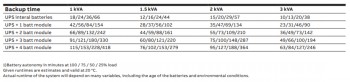 PowerValue 11 RT G3 LIB IEC toimii itsenäisenä UPS-laitteena, tai se voidaan asentaa vakiomalliseen 19" räkkiin Sisäänrakennetun erittäin tehokkaan litiumioniakun ansiosta yksittäinen UPS turvaa jopa 15 minuutin varakäyntiajan täydellä kuormituksella. Viiden vuoden takuu ja 8–10 vuoden suunniteltu käyttöikä auttavat vähentämään käyttökustannuksia tuotteen koko elinkaaren ajan. Kaikkiin laitteisiin voidaan asentaa enintään neljä ulkoista akkumoduulia, joista jokainen on vain 1U:n korkuinen. Tämä pidentää varakäyntiaikaa rajallisessa tilassa.
