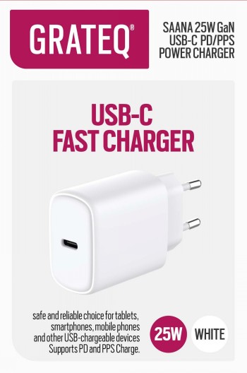 GRATEQ SAANA POWER CHARGER GaN PD/PPS USB-C 25W WHITE