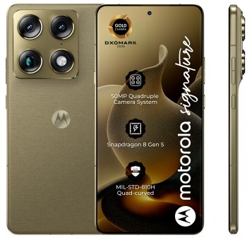 Introducing the all-new motorola signature series, a purposeful combination of technology and design—and a true reflection of Motorola’s DNA. It starts with contoured edges and an ultrathin profile crafted to form the most sophisticated of silhouettes, while using aluminum throughout the frame for added elegance and durability. Combined with unique finishes and materials, the result is a sensory experience unlike any other. Inside, motorola signature devices offer the ultimate in performance, recognized by DXOMARK Gold Label for the highest standards of imaging excellence. Engineered with Sony LYTIA™ sensors, Dolby Vision® recording, and the next gen Snapdragon® 8 Gen 5 processor, you have all the power you need to capture moments like never before. With up to seven years of OS and security updates and exclusive concierge services, your entire experience is elevated.(1) Expect the best from motorola signature.
