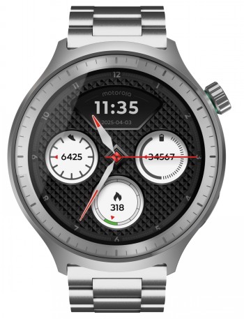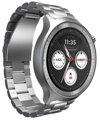 Finally, wellness tracking that can go anywhere, from the outdoors to a night out. Introducing the new moto watch, classic yet sporty with a sleek, timeless 47mm design. Built to last with a stainless steel frame, Corning® Gorilla Glass® 3, and underwater protection(1). With activity and wellness tracking powered by Polar, you can monitor what matters most and stay on course with dual-frequency GPS. Enjoy up to 13 days(3) without recharging. Take calls and listen to notifications right from your wrist.(4) And experience vibrant clarity day or night with a 1.4" OLED display, customizable with your choice of watch faces. Plus, it’s loaded with intelligent features to make every day easier. moto watch. Fit for life.